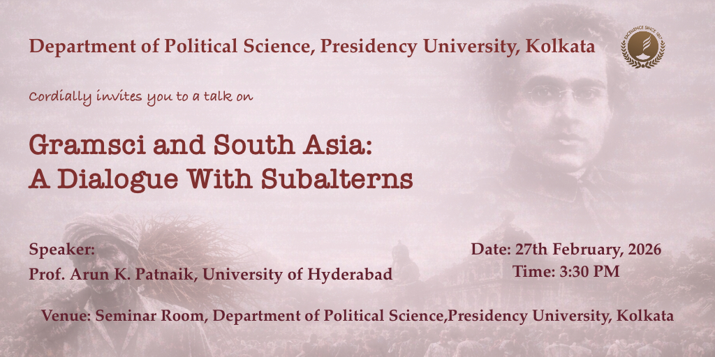 • Venue: Institute of Health Sciences, Presidency University – 2nd Campus (Newtown). PHYSICS COLLOQUIUM Speaker: Dr. Dipjyoti Das, IISER, Kolkata Date & time: 25th February, 2026 at 3.30pm(IST) Venue: Amal Kumar Raychaudhuri Lecture Hall (PLT-2), Department of Physics Title: Stochastic processes and non-equilibrium transitions in biological systems Colloquium at the School of Astrophysics Date, Time & Venue: February 25, 2:45 PM, Astrophysics Classroom 1 Speaker: Dr. Sangita Chatterjee, Presidency University Kolkata. Title: Environmental Signatures in Gravitational Waves from Extreme Mass Ratio Inspirals